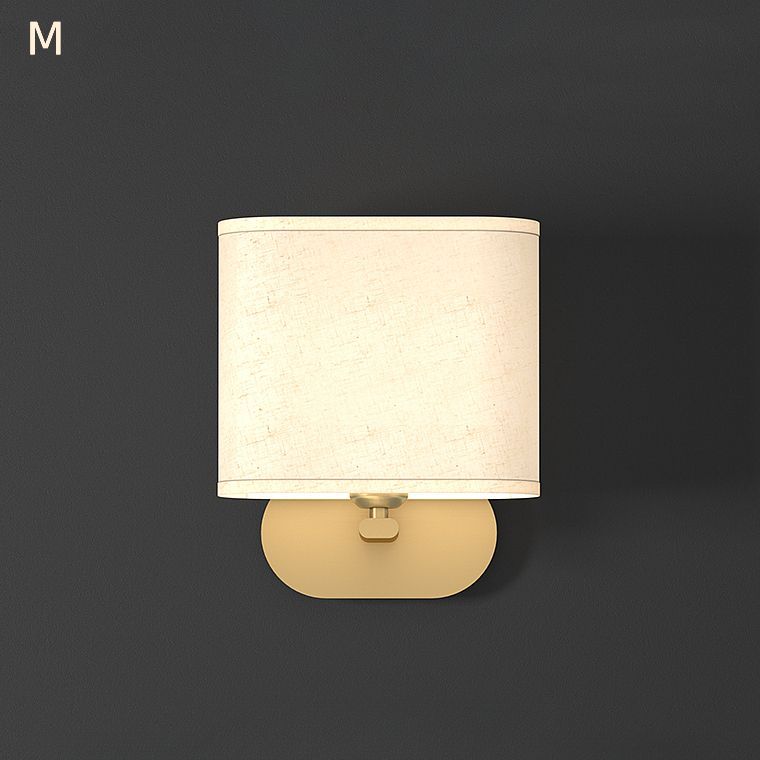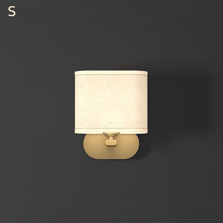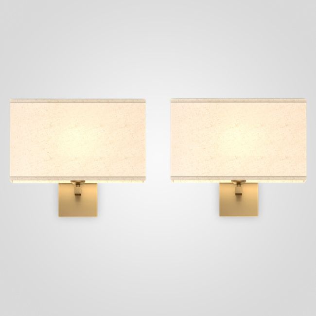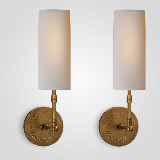 Серия настенных светильников с белым текстильным абажуром на латунном креплении округлой формы