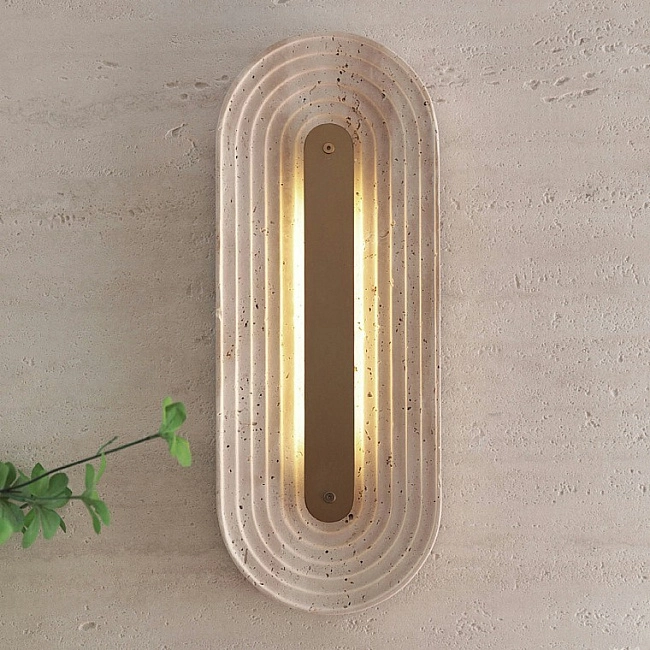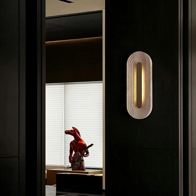 Настенный светильник с деревянным ребристым корпусом в форме овала