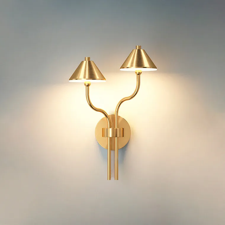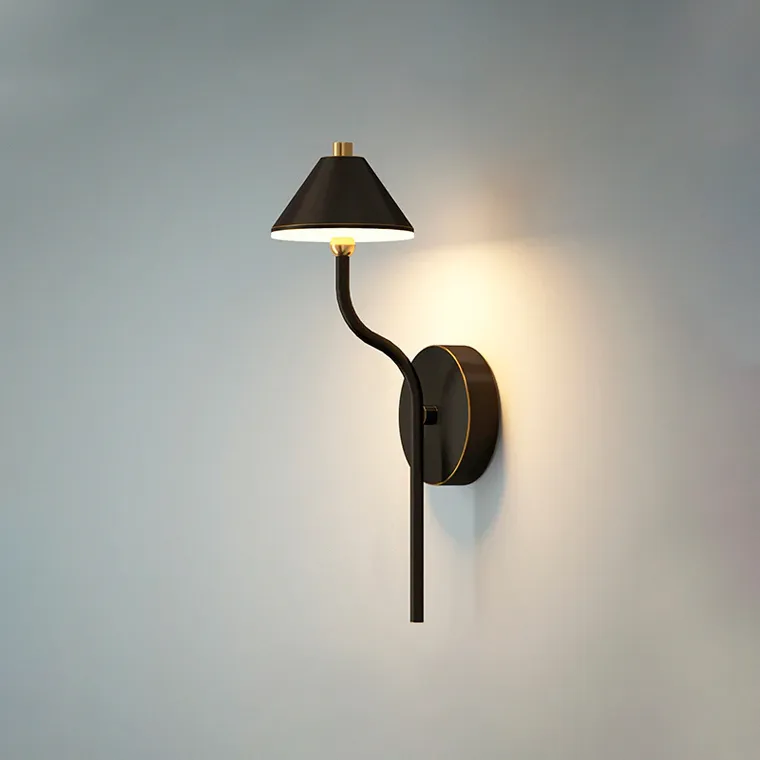 Серия настенных светильников с коническими плафонами на изогнутых рожках