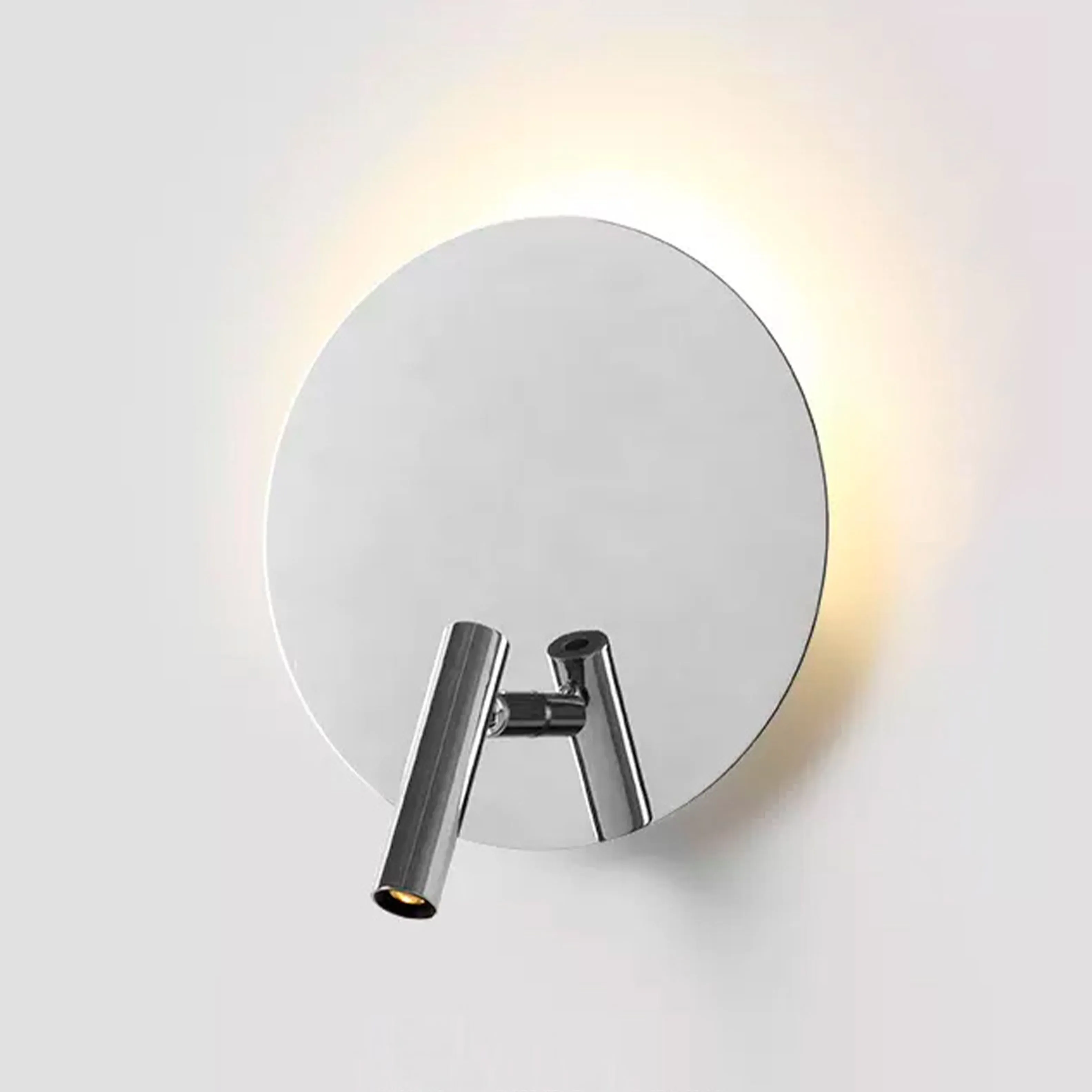 Светильники-диски оснащены LED-подсветкой, которая обеспечивает мягкое и равномерное освещение, не мешая при этом окружающим. Поворотный спот позволяет регулировать направление света, обеспечивая комфортное освещение в любой точке комнаты. Вылет от стены составляет 8 см. Мощность света - 5W+3W.