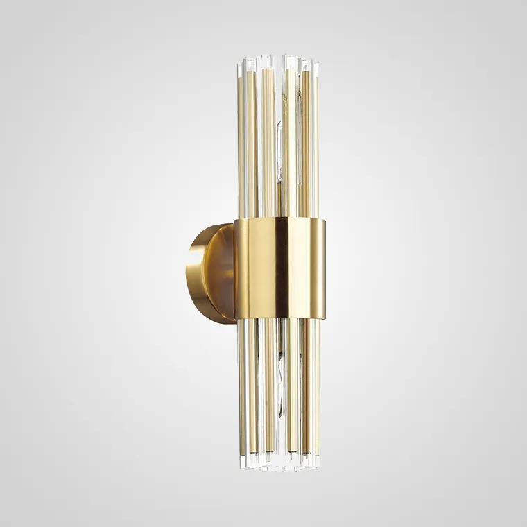Бра в форме цилиндра с центральным золотым кольцом, со стеклянными и металлическими стержнями