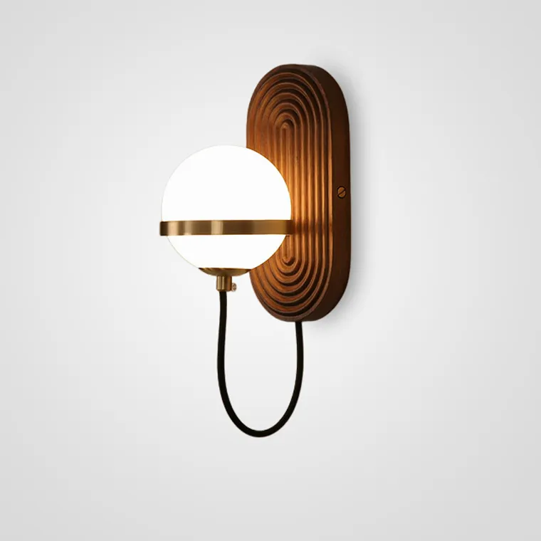 Настенный светильник с шарообразным матовым плафоном и деревянной отделкой