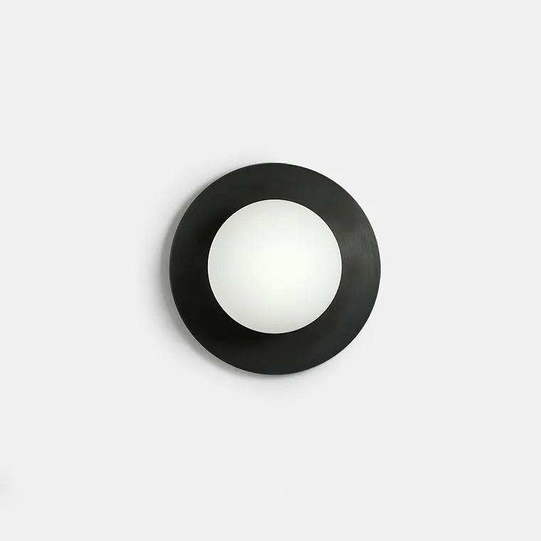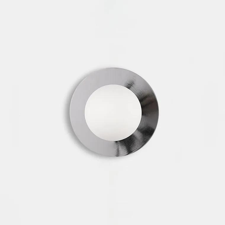 Серия настенных светильников с шарообразным матовым плафоном из стекла на дисковидном металлическом основании