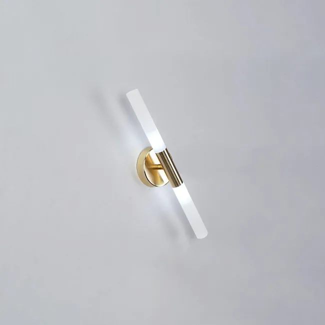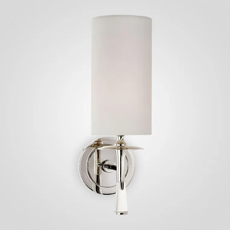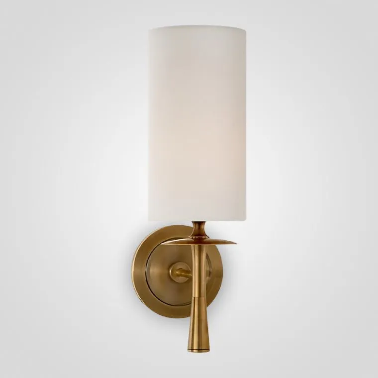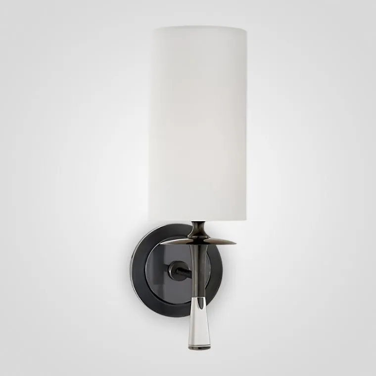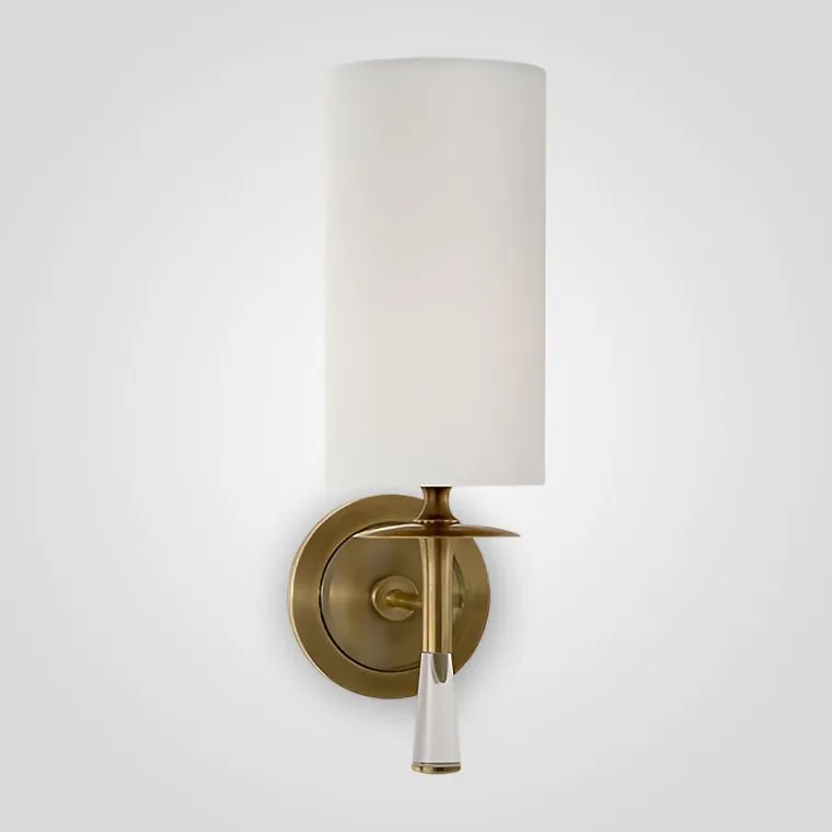Настенный светильник с текстильным абажуром цилиндрической формы и хрустальным клипом на основании из натуальной латуни