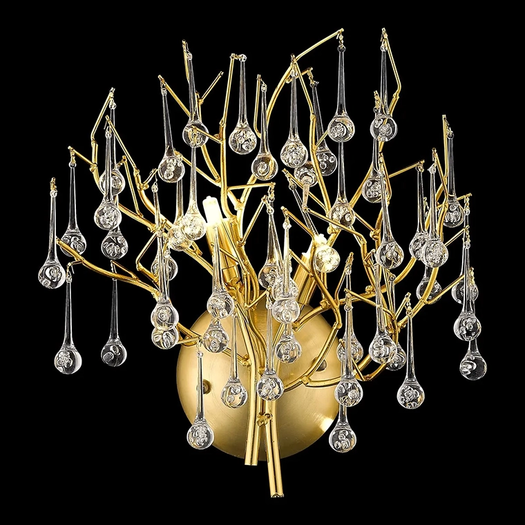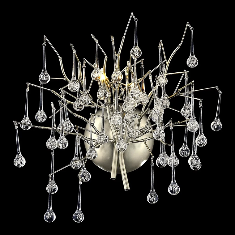 Настенный светильник с ветвистым каркасом и стеклянными каплевидными подвесками