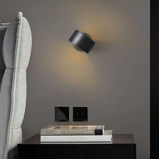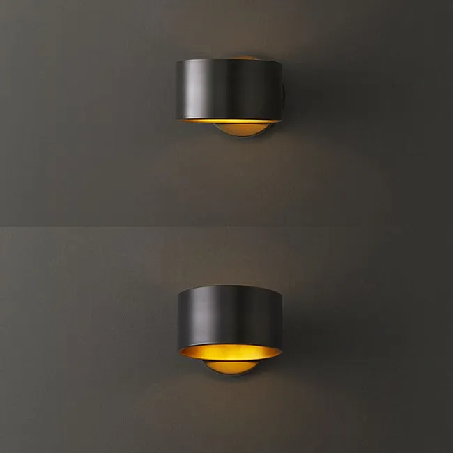 Настенный светильник с двустворчатым брашированным металлическим плафоном и цилиндрическим экраном