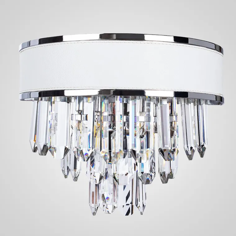 Настенный светильник с круглым кожаным абажуром и хрустальными повесками