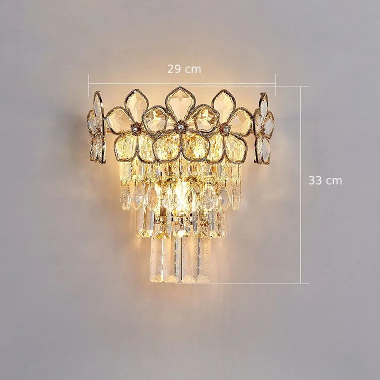 Настенный светильник с декором в виде хрустальных цветов и подвесок на металлическом каркасе