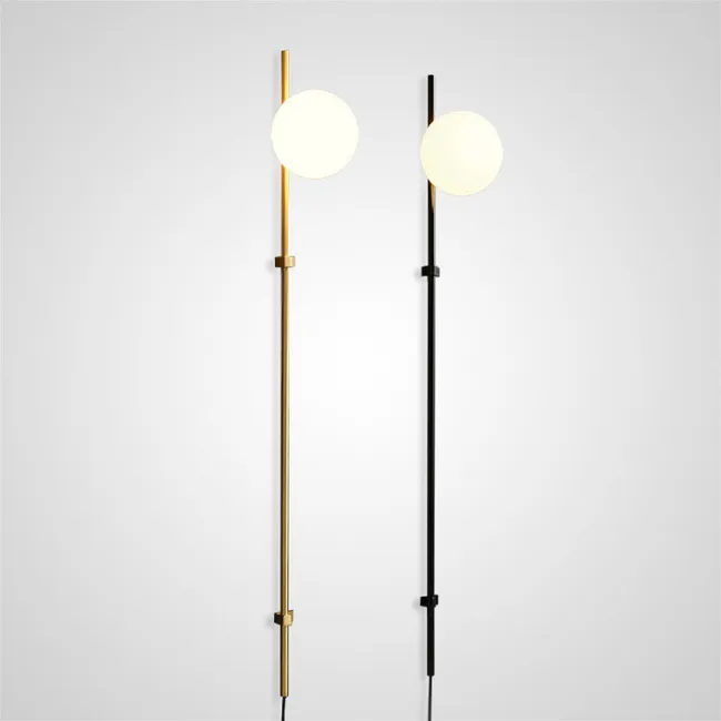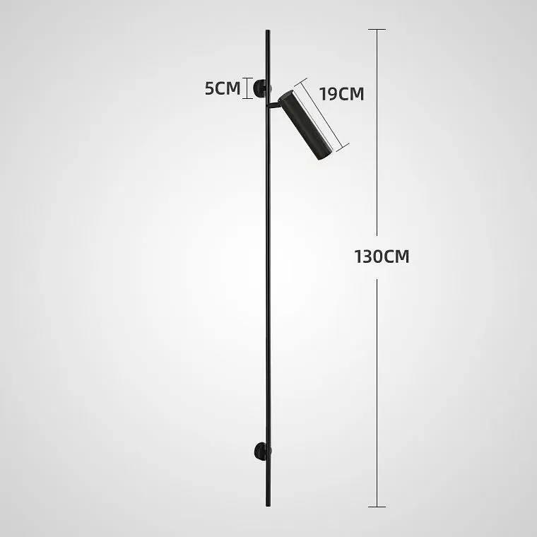 Настенный светильник с цилиндрическим поворотным спотом на вертикальной стойке из благородной латуни. Его строгий черный цвет добавляет элемент роскоши и загадочности, а высокая стойка из латуни тонко подчеркивает неповторимую элегантность.