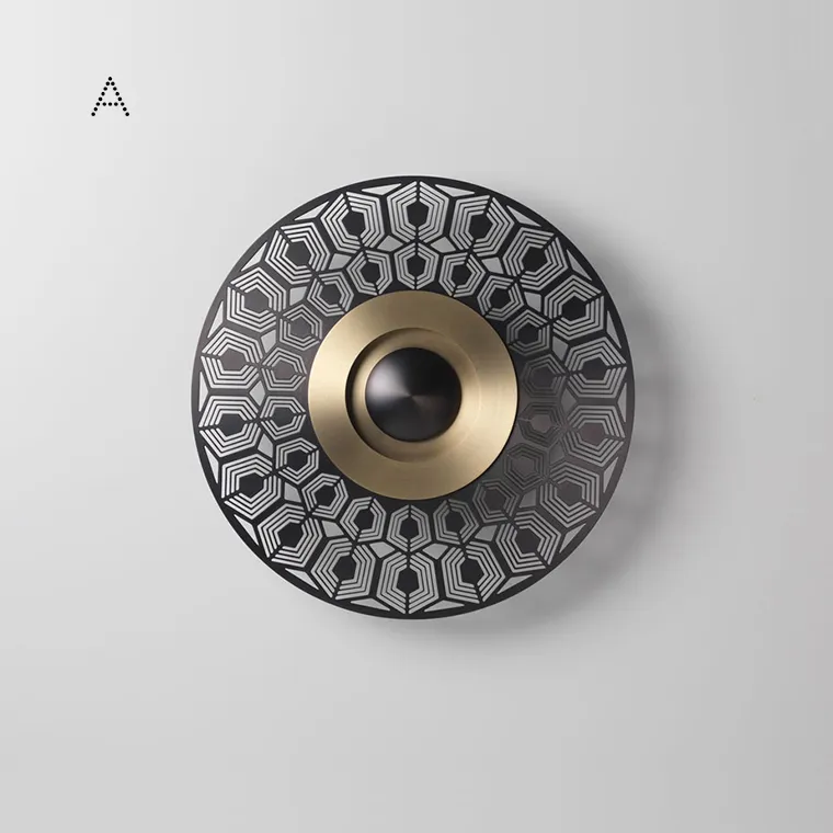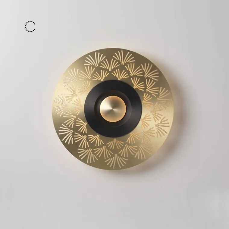 Дизайнерский настенный светильник в виде металлического диска с лазерным узором в стиле неоклассики создан для настоящих ценителей утончённого французского дизайна. Плафон бра выполнен так, чтобы через него проходил только мягкий не ослепляющий свет. Модель станет эффектной и, главное – практичной деталью в интерьере гостиной, спальни или обеденной зоны.