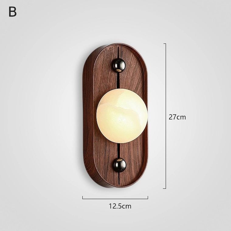 Серия настенных светильников с деревянным основанием круглой и овальной формы и мраморным плафоном-полусферой