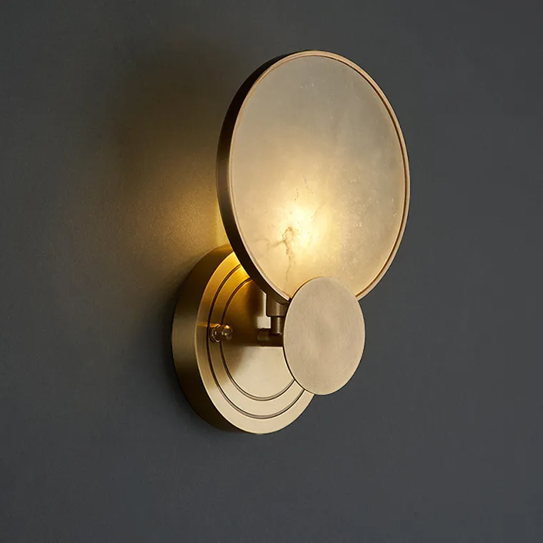 Настенный светильник из латуни с мраморным рассеивателем в виде диска