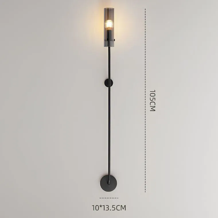 Бра на высокой стойке с цилиндрическим плафоном из рифленого стекла