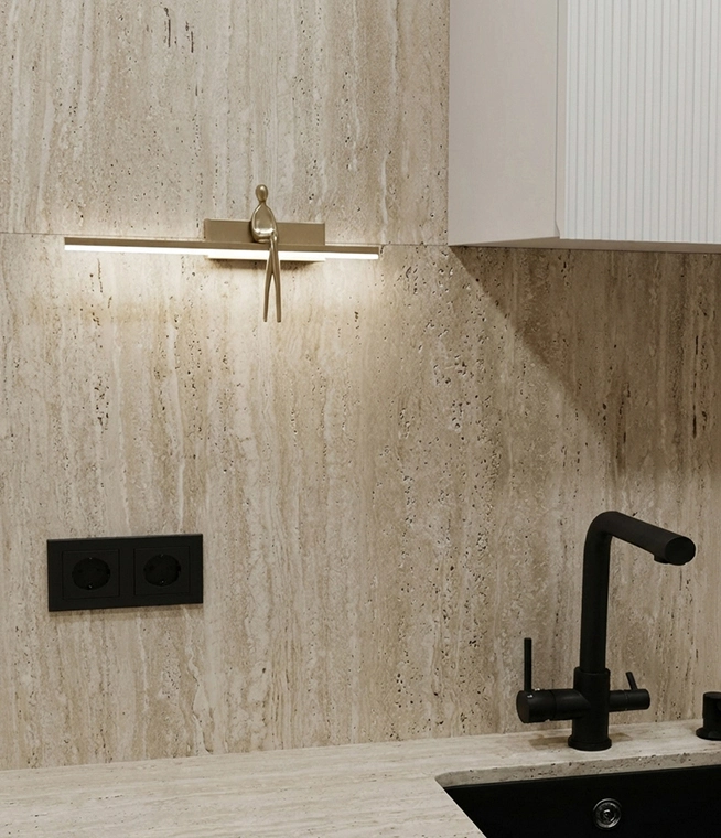 Просто вау! Супер необычное бра, абстрактное такое, интересное, навевающее всякие разные мысли. Как будто человечек сидит на лавочке и ждёт кого-то или чего-то. И вот под этой лавочкой как раз ЛЕД подсветка. Её можно регулировать – делать теплее, холоднее или нейтральной. На моей стене круто смотрится, я даже не ожидала, что так меня завораживать будет.