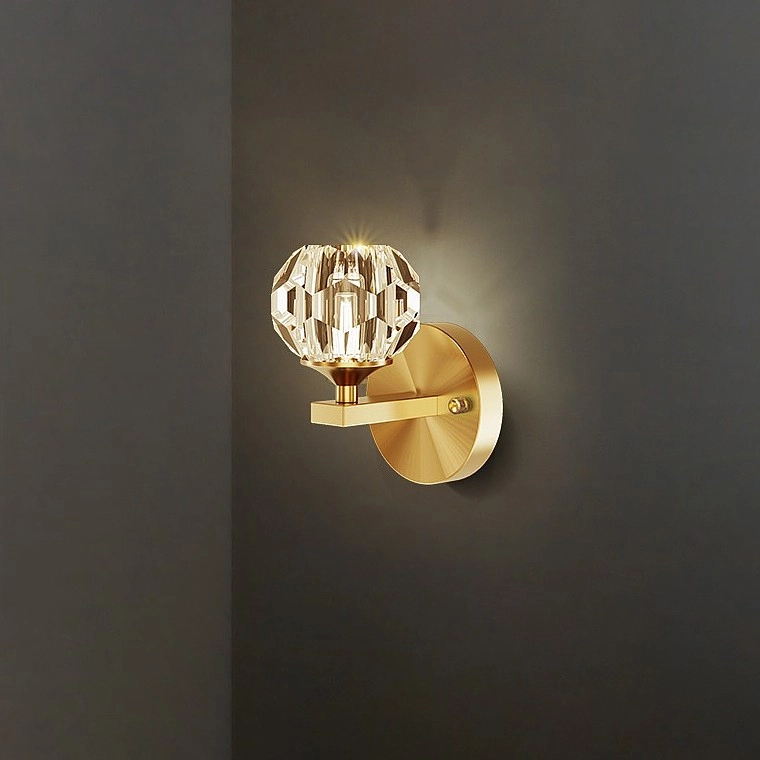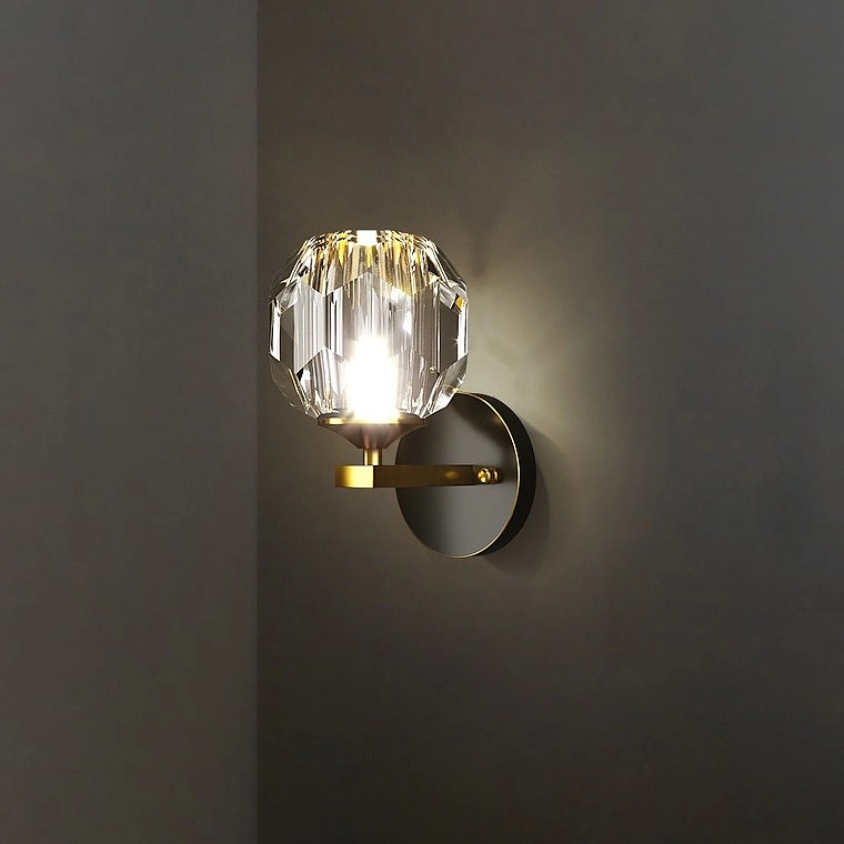 Настенный светильник с фактурным хрустальным плафоном, напоминающим граненый кристалл, на латунном кронштейне