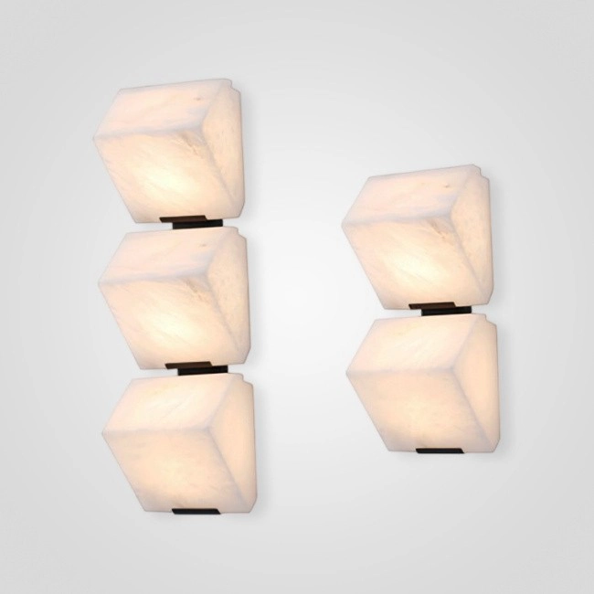 Серия настенных светильников с вогнутым рельефным корпусом из керамики и шарообразным плафоном в центре