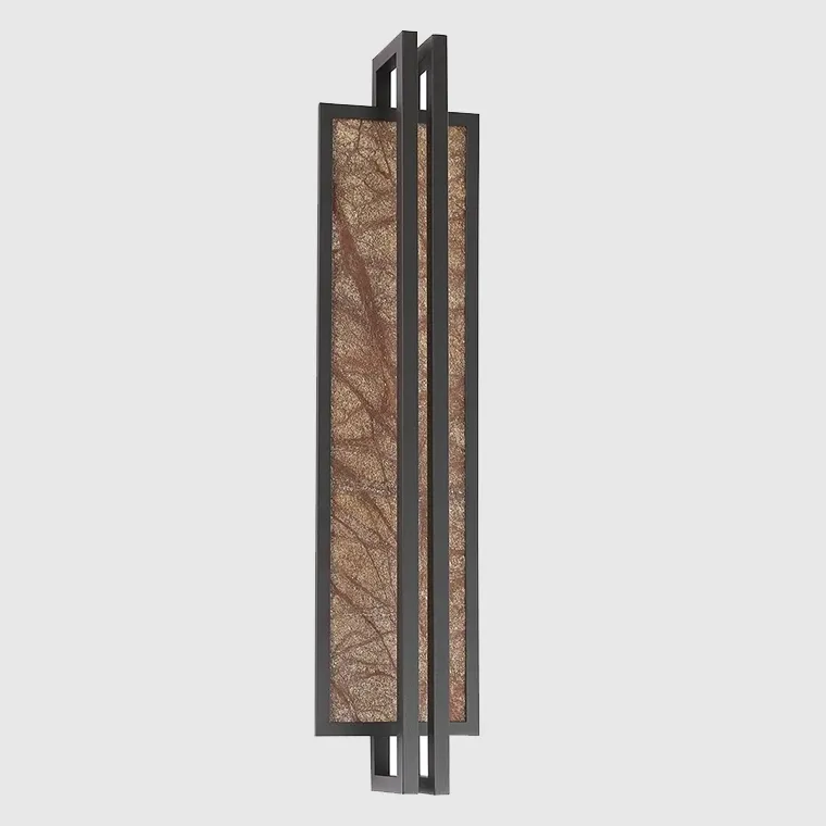 Серия настенных светильников с LED-подсветкой по контуру вытянутого округлого корпуса с текстурой темного и светлого дерева