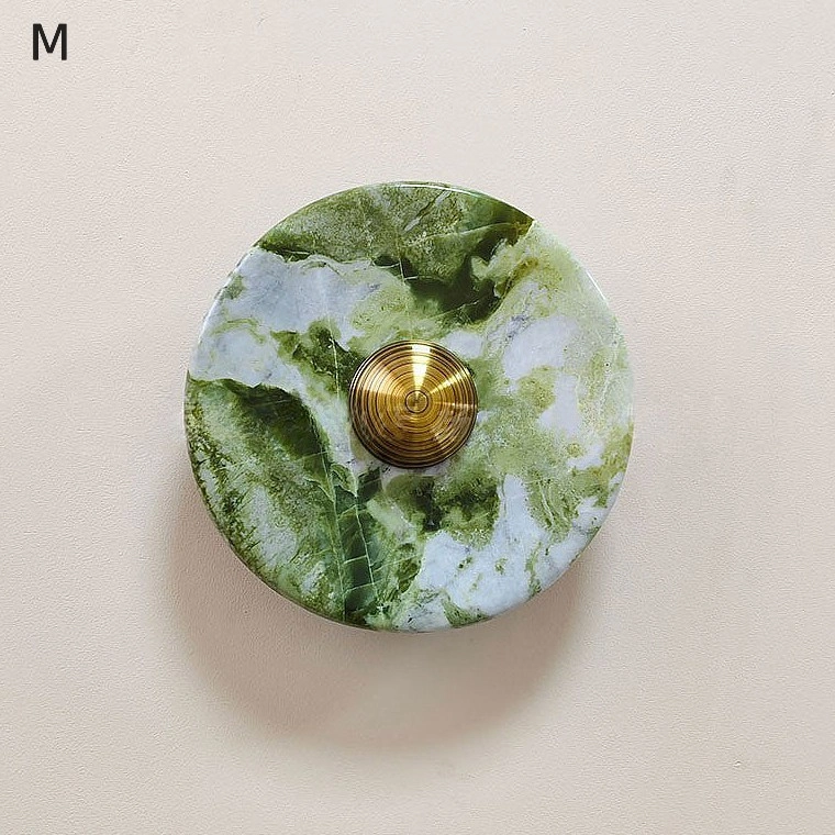 Серия акцентных настенных светильников с дисковидным рассеивателем из мрамора и металлической сердцевиной