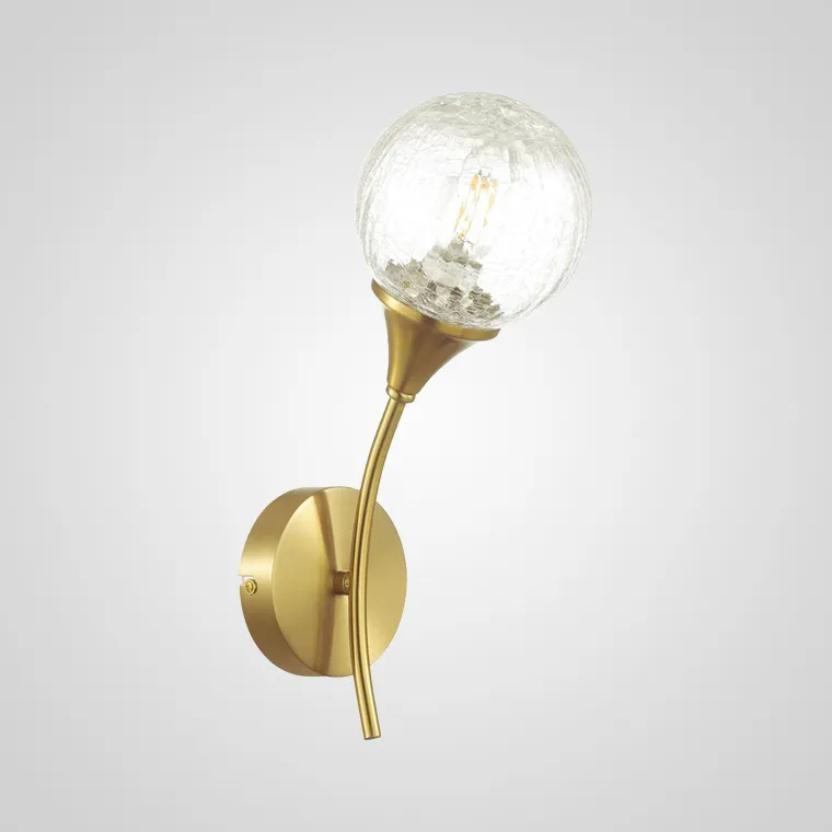 Настенный светильник на изогнутой стойке с шарообразным кракелированным плафоном