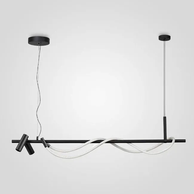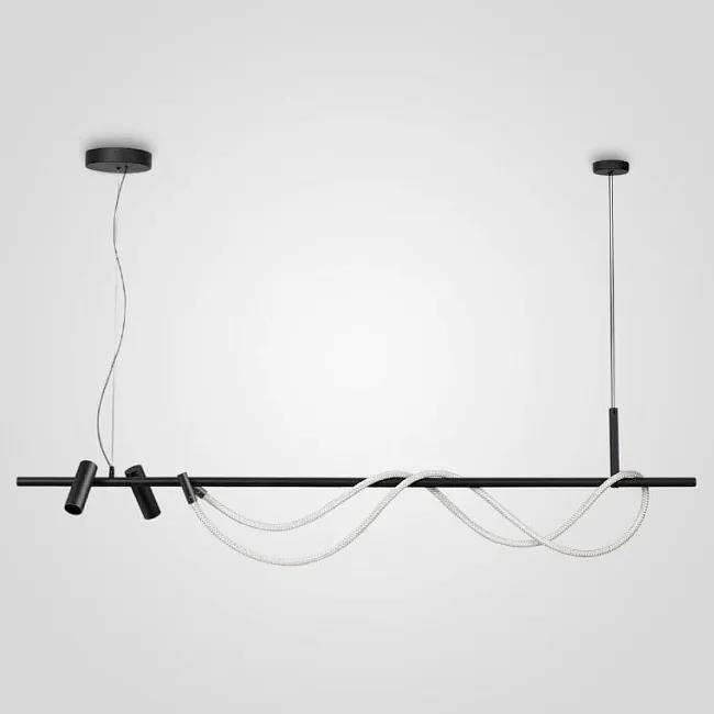 Если вам понадобится изменять направление света, выбирайте трекинговые светильники или споты. Если же вы хотите отдельно акцентировать внимание на острое, обеденной столешнице или барной стойке, отдавайте предпочтение вариантам на длинных подвесах — например, с пространственными металлическими фигурами или из прозрачного стекла.