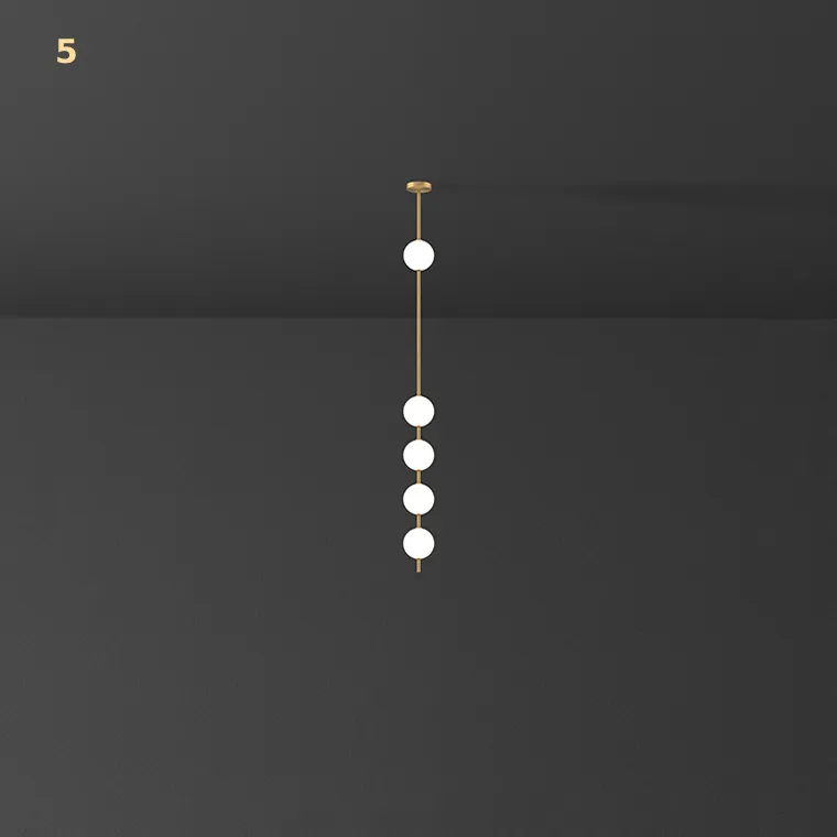 Серия светильников с белыми шарообразными плафонами на вертикальной стойке из настоящей латуни
