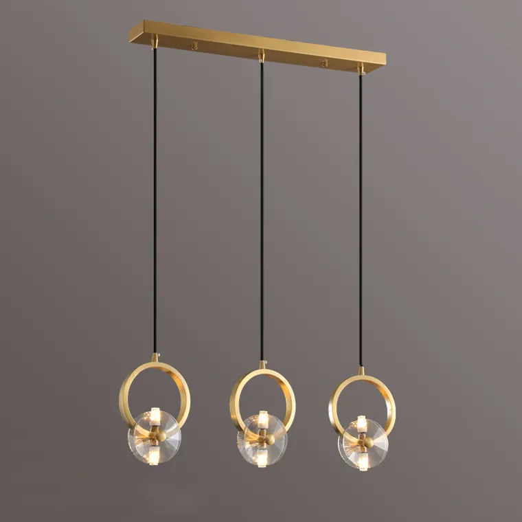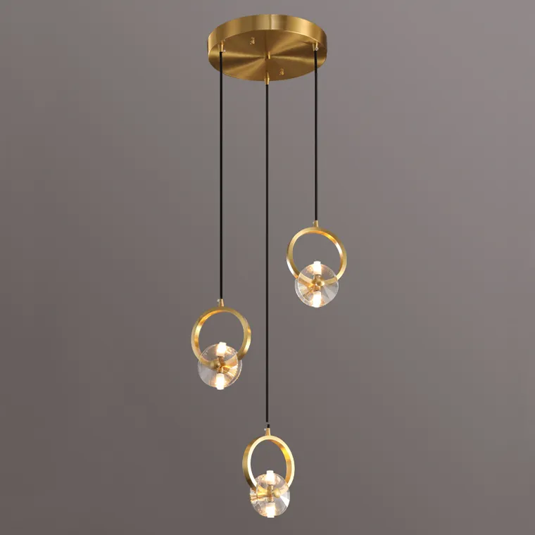 Комбинация из трех светильников с плафонами в виде кристаллов на латунных кольцах