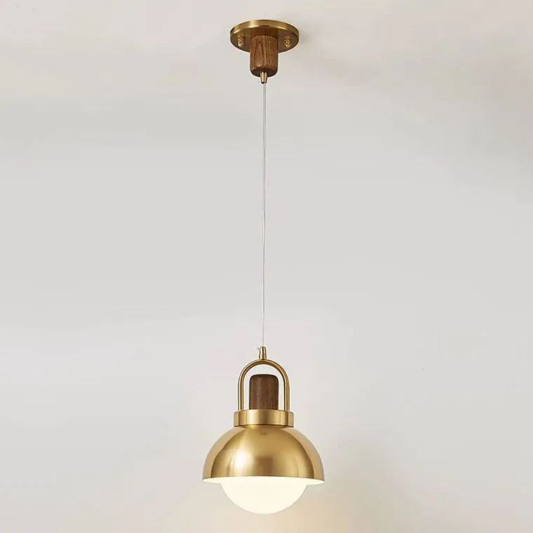 Изящная купольная форма, выполненная в благородном золотом цвете, гармонично дополнена теплым акцентом натурального дерева в виде цилиндра.