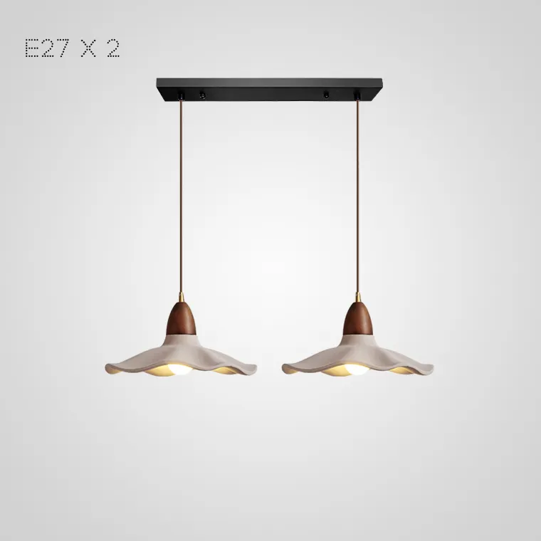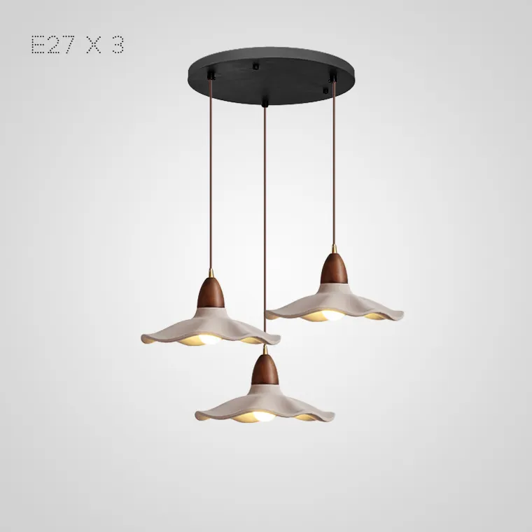 Готовая комбинация подвесных светильников с купольными абажурами из керамики и дерева с природными мотивами