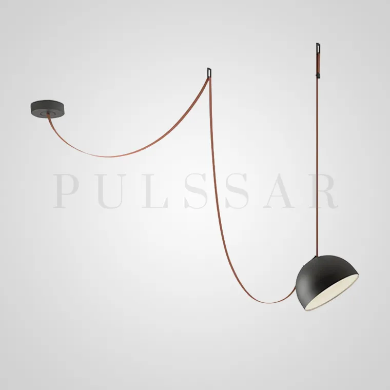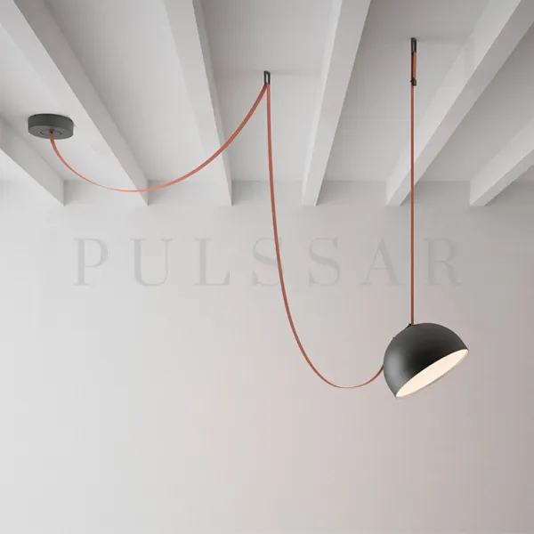 Подвесной светодиодный светильник c черным абажуром на красном текстильном тросес регулируемым углом наклона