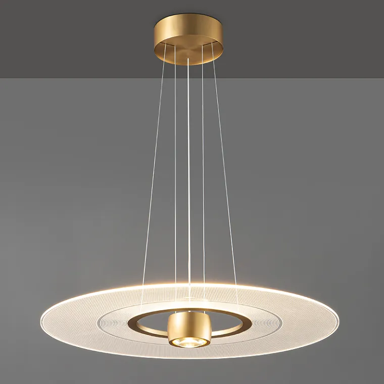 Подвесной светодиодный светильник с центральным линзированным спотом и дисковидным рассеивателем с гравировкой