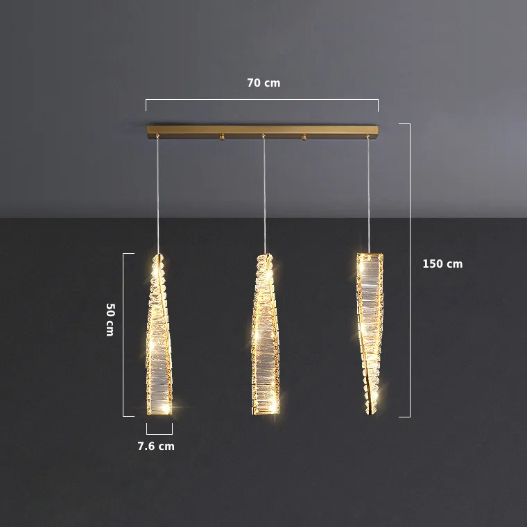 Готовая комбинация подвесных светодиодных светильников со спиралевидными плафонами из многогранных хрустальных пластин