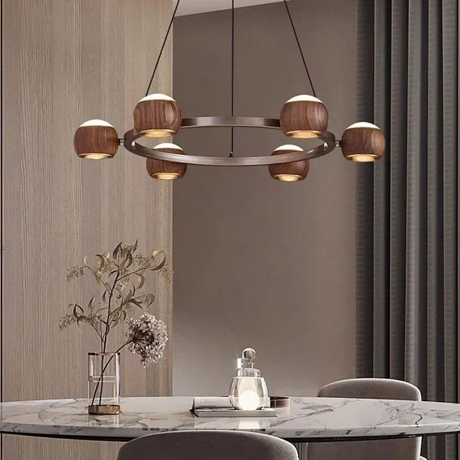Этот подвесной светильник станет не только функциональным элементом освещения, но и настоящим произведением искусства в вашем интерьере. Приглушенные оттенки дерева и блеск металла гармонично сочетаются, создавая гармоничное и современное пространство.