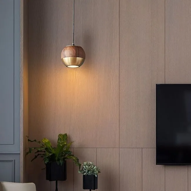 Завораживающий подвесной светильник с уникальным и стильным дизайном, который станет идеальным дополнением для вашего интерьера. Шар из массива дерева, плавно переходящий в металл, создает ощущение легкости и прочности. А декоративная латунная вставка добавляет акцента и шарма.
