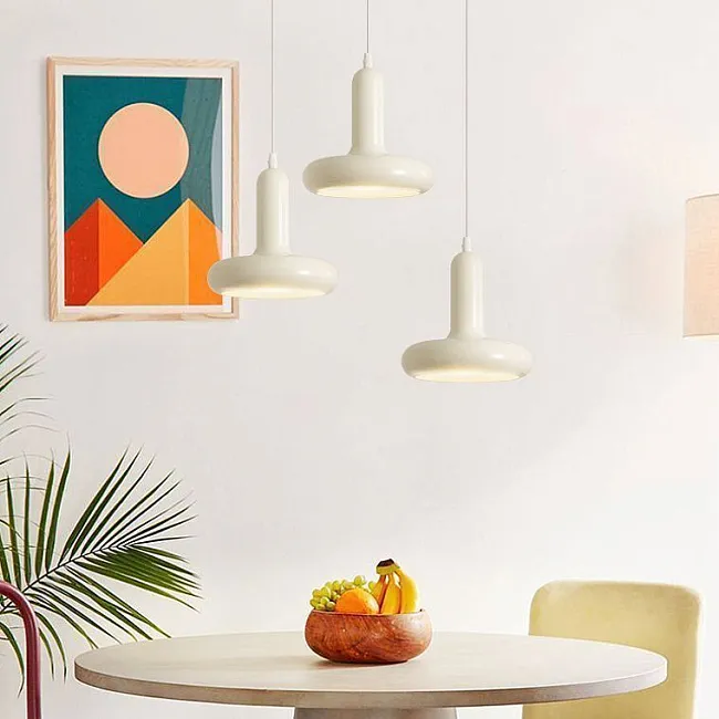 Подвесной светильник с белым овальным плафоном и декором из сложенных разноцветных «камней». Асимметричная композиция в духе современного искусства