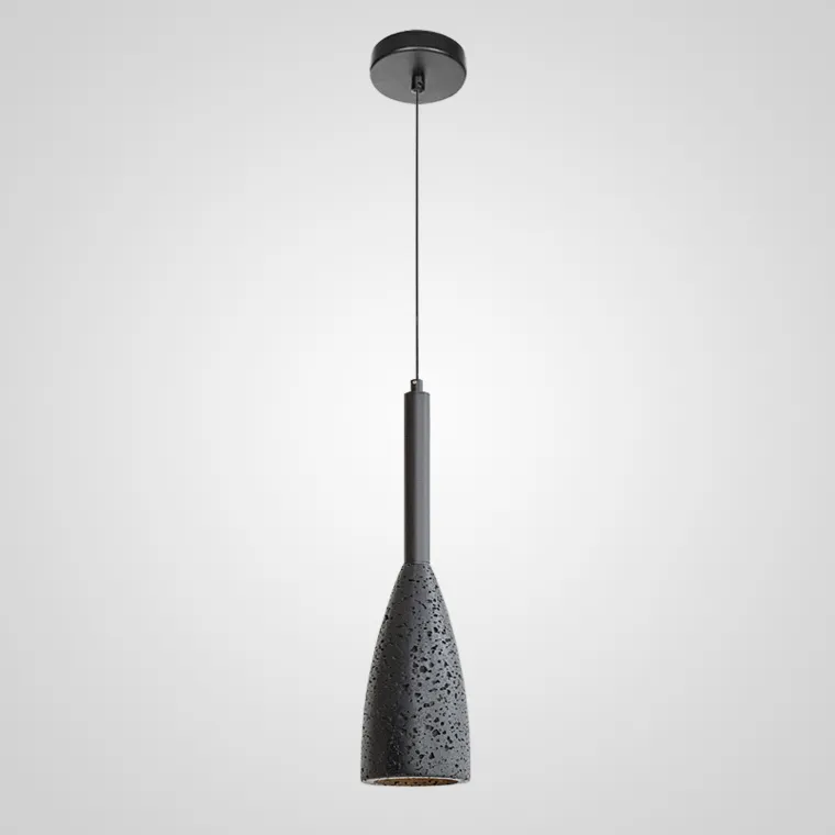 Подвесной светильник с рельефным плафоном в форме кегли из черного лавового камня