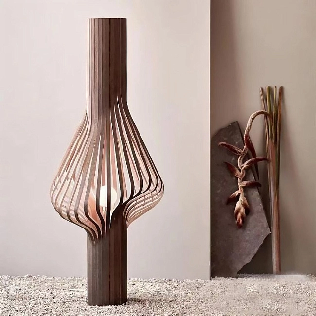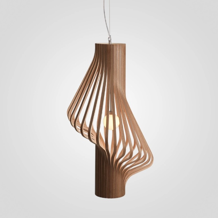 Подвесной светильник с плафоном в виде динамичной спиралевидной конструкции с плавными изгибами