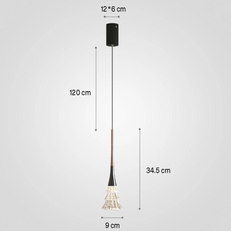Подвесной светильник конусовидной формы со стеклянным плафоном из трех ярусов, имитирующих ледяную текстуру