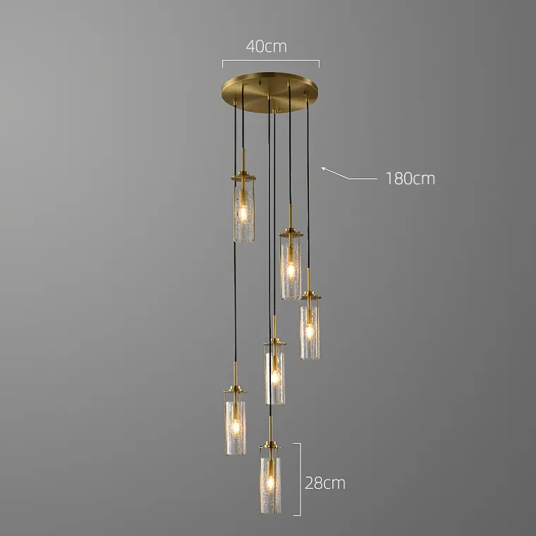 Готовая комбинация подвесных светильников с цилиндрическими плафонами из кракелированного стекла в металлических держателях