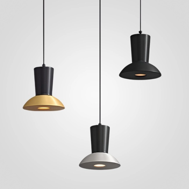 Серия подвесных светодиодных светильников с цилиндрическим корпусом и коническим плафоном с оптической линзой
