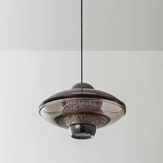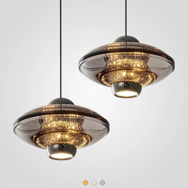 Серия подвесных светильников в виде диска с LED свечением и направленным линзированным источником посередине