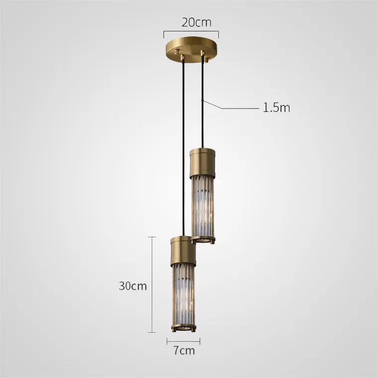 Подвесной светильник с цилиндрическим плафоном из стеклянных стержней в бронзовой оправе