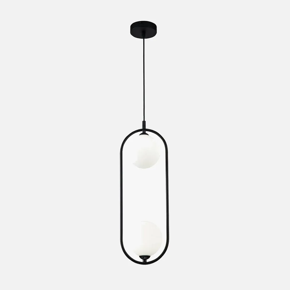 Оригинальный светильник HOOP-DUO-BW подойдет для любителей минимализма. Два матовых шарообразных плафона, похожие на большие жемчужины, расположены внутри основы из металла овальной формы. Какой вариант светильника выбрать, с черным или белоснежным корпусом, зависит от решения дизайнера. Если купить подвесной светильник HOOP-DUO-BW в России недорого, можно создать новый акцент в привычном интерьере.