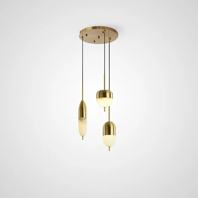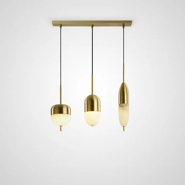 Готовая комбинация подвесных светодиодных светильников с тремя округлыми плафонами из натурального белого мрамора