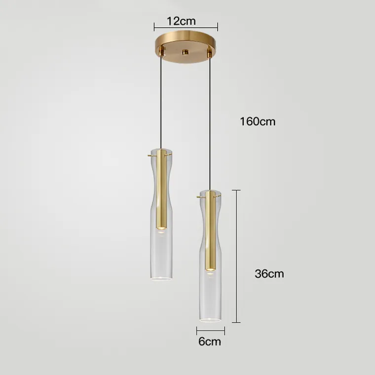 Готовая комбинация подвесных светодиодных светильников с двумя цилиндрическими плафонами в стеклянном корпусе в форме песочных часов
