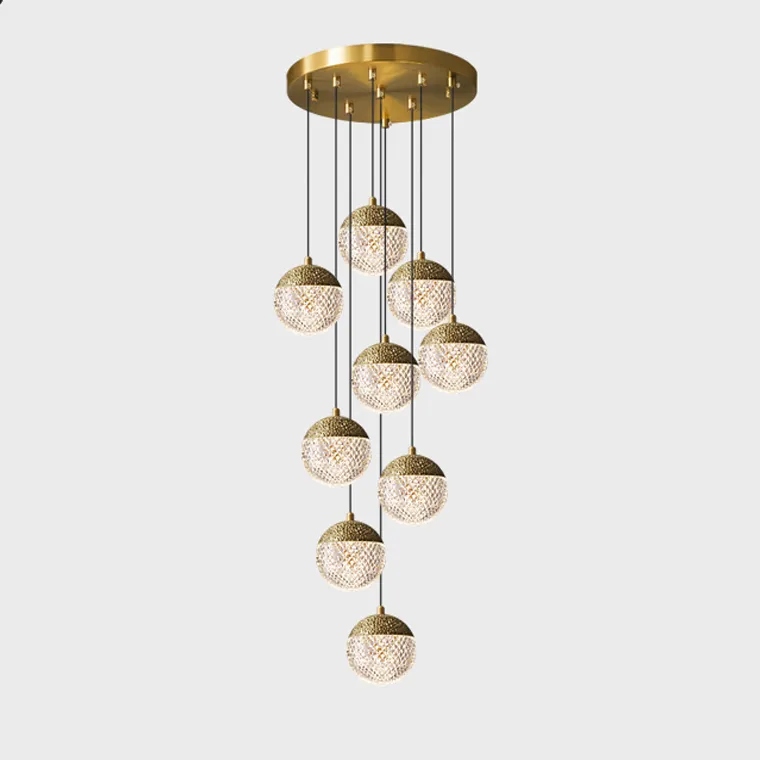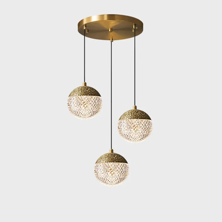 Готовая комбинация подвесных светодиодных светильников с шарообразными рельефными плафонами в латунном корпусе