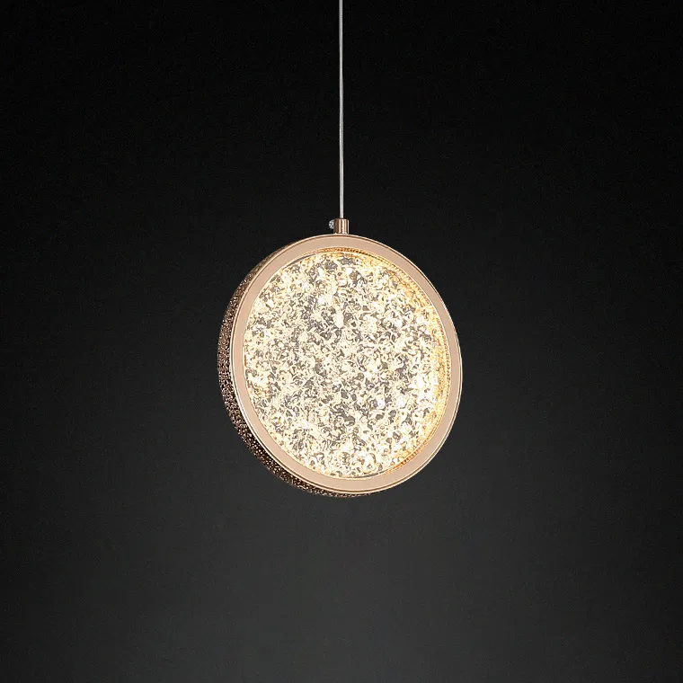 Подвесной светодиодный светильник с круглым плоским плафоном из рельефного акрила и металла
