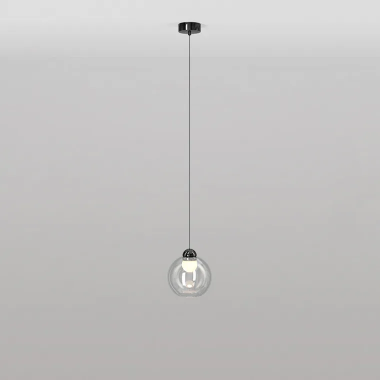 Подвесной светодиодный светильник с округлым источником в шарообразном плафоне из прозрачного стекла