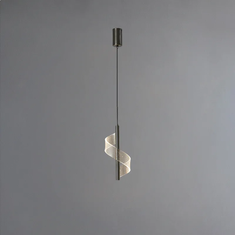 Серия подвесных светодиодных светильников с завитым лентовидным плафоном с точечным паттерном