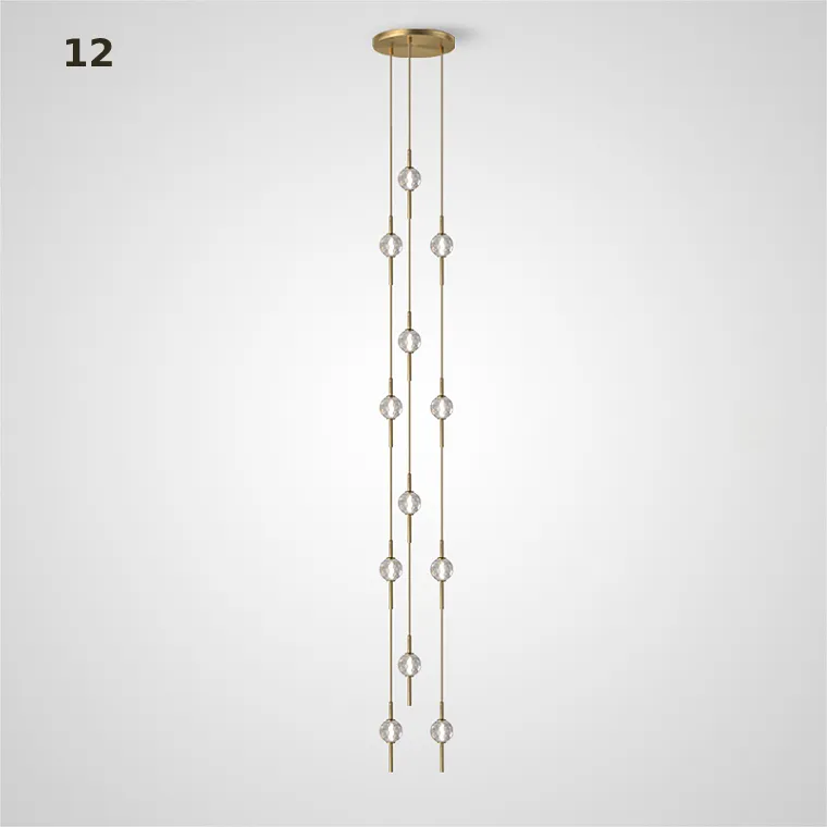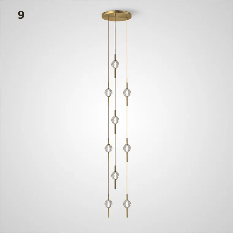 Готовая комбинация подвесных светодиодных светильников с хрустальными рассеивателями в виде многогранных шаров