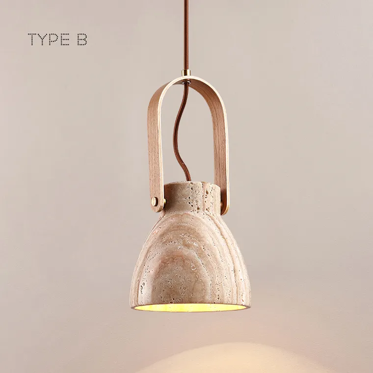 Серия подвесных светильников с трапециевидным корпусом из натурального травертина